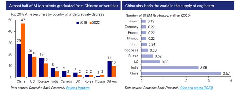 Still, China’s system carries risks: lock-in to suboptimal architectures, political interference in capital allocation, and slower responsiveness to scientific disruption. Meanwhile, the U.S. and Europe are beginning to wake up, with industrial policy and infrastructure investments that suggest a pivot toward China’s playbook.